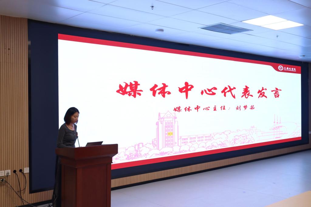胡帅老师在发言中表示,希望新同学们通过本次活动能对公司团学组织有进一步的了解,并能结合自身实际选择适合自己的部门,丰富大学课余生活,在实践中锻炼自我,在团学工作中增长才干,在热爱中收获成长。 媒体中心在大家的热烈欢迎中率先登场,运营部、编辑部、技术部和记者团各自展示了自己的部门职责和特色,表达了对新同学加入的期待。 (员工)团委和员工会采用“团学一体”方式进行宣讲,两个员工组织的对口交流部门两两成对进行了精彩的宣讲。各部门采用丰富多样又生动有趣的形式进行部门介绍和讲解,赢得了在场同学们的阵阵掌声。