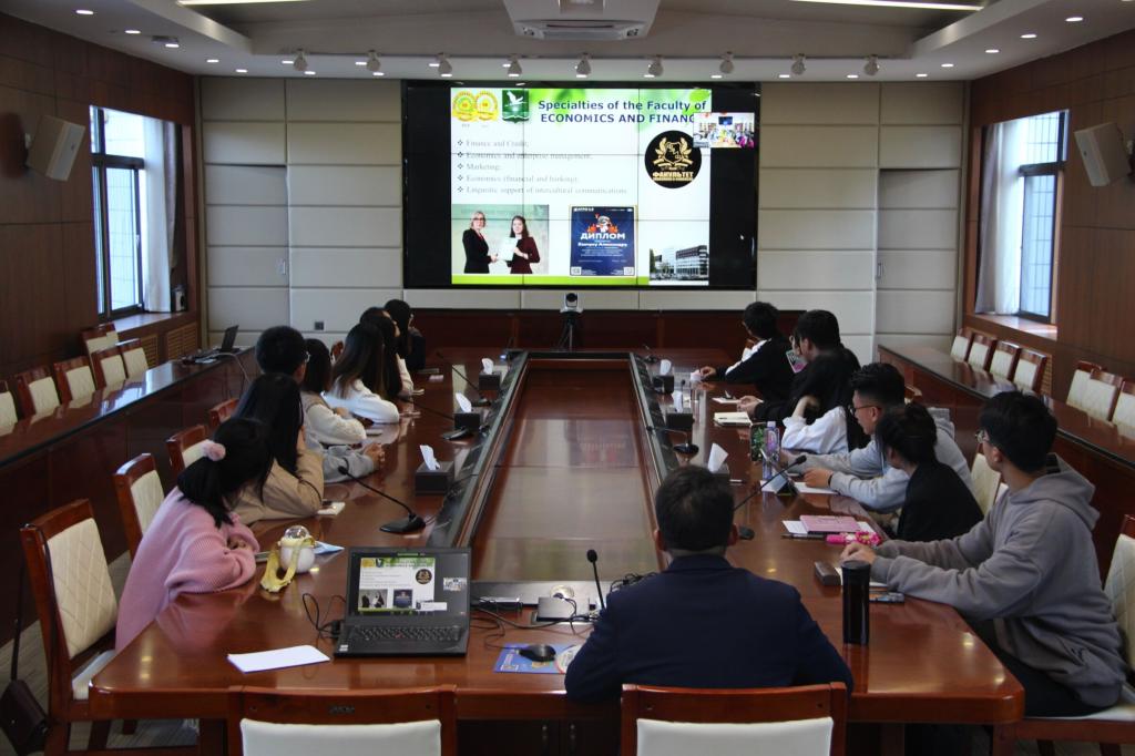 紧接着,两校员工代表进行展示交流。公司员工代表曹梦菲和万锦涛从校园地理位置、专业设置、文化标识、建筑风貌等方面对ladbrokes立博整体情况做介绍,并向波列斯克国立大学的同学们介绍了中国的文化历史、民族风俗习惯、中国传统节日以及四大发明等各类标志性文化。波列斯克国立大学员工代表则重点介绍了波列斯克国立大学的人文风情和文化历史渊源,以及对白俄罗斯的文化发展历程、各地区文化风俗概览以及各类有趣的文化节等进行了分享.