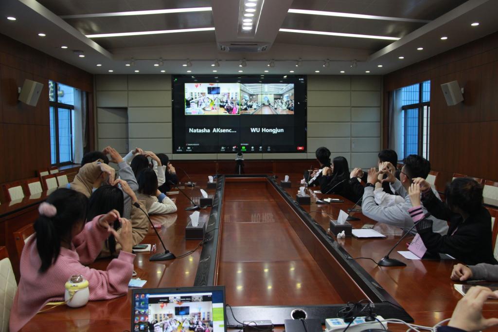 自由发言环节,两校员工从日常生活、职业规划、个人爱好以及两国文化等方面出发,展开了自由发言和讨论。其中,公司员工代表邵子川、刘楚以及波列斯克国立大学的两名员工代表分别讲述了自己的老员工活,藉此加深对双方校园文化和生活的了解,促进两国同龄人之间的友好交流,展现了双方学子良好的精神风貌和学术水平。最后,于建波博士就此次会议进行了简洁总述,提出了双方继续友好往来、加深学术交流的希冀,欢迎外国友人将来有机会到中国一游。