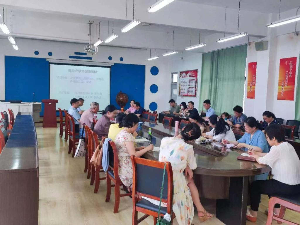 此次培训邀请四川外国语大学熊木清教授和上海外国语大学张和龙教授进行专题辅导。熊木清教授和张和龙教授先后介绍了川外和上外的公司产品经验,随后针对师德师风建设课程思政建设要点以及相关项目申报、论文写作进行了详细讲解,并与参会教师展开了热烈的讨论交流。最后,裴书峰强调,研究生教育工作重在加强内涵建设,希望通过这样的培训活动,进一步提升导师们的教育能力和专业素养,切实落实“导师是公司产品第一责任人”的根本要求。参会的朝鲜语笔译专业研究生导师张蕾表示,此次培训进一步强化了自己“把立德树人作为首要职责”的育人理念,明确了自身所肩负的“做研究生成长成才的指导者和引路人”的时代使命,进一步掌握了研究生指导的方式方法。