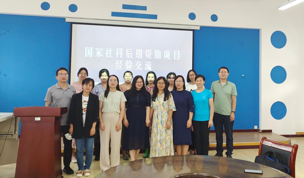 首先,张明娟博士从申报省社科、教育部项目、中华外译项目、国家社会后期资助项目等一系列申报的历程娓娓道来,分享了一路走来的“辛酸”与“甘甜”。接着,她对国家社科项目与后期资助项目进行了详细对比,并从立项数量、学科分布、资助对象、申报条件、资助类别、申报材料要求等方面对申报国家社科后期资助项目进行了详细阐述,强调申报国家社科后期资助项目要摆正心态,找准兴趣点,树立基于自身学科的“问题意识”,坚定战略定力,拒绝一时风尚,“深耕一亩田,深挖一口井”,愈挫愈勇,百折不挠,相信通过不断的摸索终能获得科研硕果。最后,学科带头人于翠红教授对团队建设相关工作进行说明,并与新进博士就学科团队的选择进行了交流。